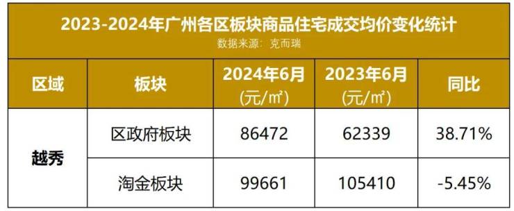 因此,这一系列变化直接反映在成交数据上,越秀区政府所在板块的住宅均价,与去年同期相比实现了惊人的38%涨幅,领跑全市,再次印证了越秀区作为广州楼市“领头羊”的强劲实力与不可撼动的地位。