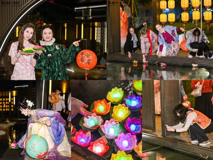 华灯映水,福韵满庭。肆水归堂旁,成为现场最具温情的一隅,嘉宾们手持花灯,将对家人的祝福、对生活的期许落笔写下,而后轻轻将花灯放入碧波之中,让花灯载着心愿缓缓漂流,在“放灯纳祥”的传统雅俗中,寄托阖家安康、团圆美满的祈愿。