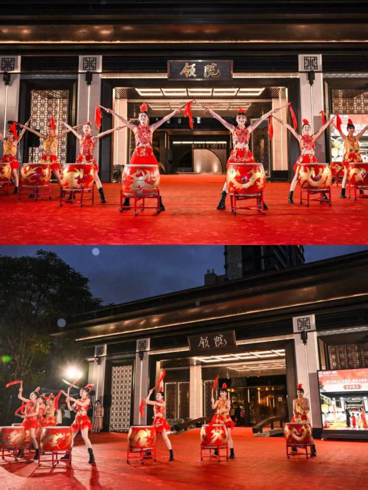 铿锵激昂的鼓乐表演燃情开场,雄浑鼓点震彻新城市・领院东门楼广场,周边居民与现场所有宾朋一同驻足观赏,热烈的鼓点瞬间点燃全场氛围。