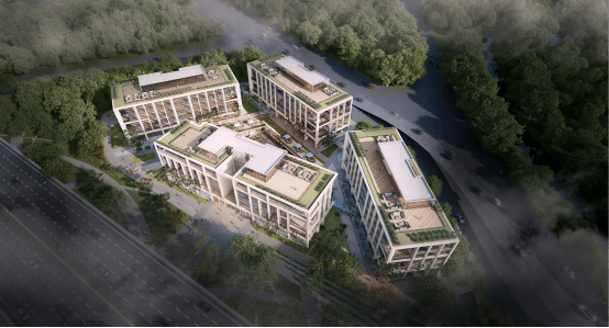 ⏩该项目建筑景观设计理念是将集成电路板的科技集成视觉形象抽象简化,转化为建筑形象的独有视觉符号,产业功能与建筑形态相融合。