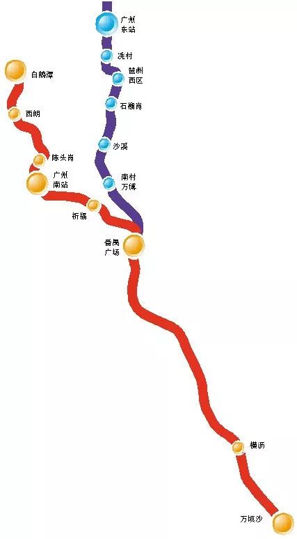 地铁18号线沿线经过南沙区、番禺区、海珠区和天河区,线路全长62.7km,共设万顷沙、横沥、番禺广场、南村万博、沙溪、石榴岗、琶洲西区、冼村、广州东站9座车站。另外,广州地铁还将连接至白云机场,以后甚至会连通清远、中山,是名副其实的“南北交通大动脉”!