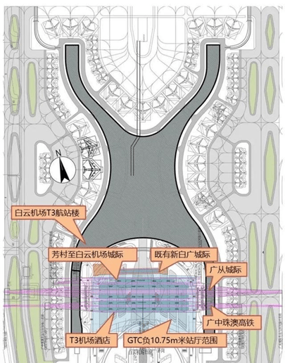 广州市发展和改革委员会正式批复白云国际机场T3交通枢纽轨道预留工程可研报告。