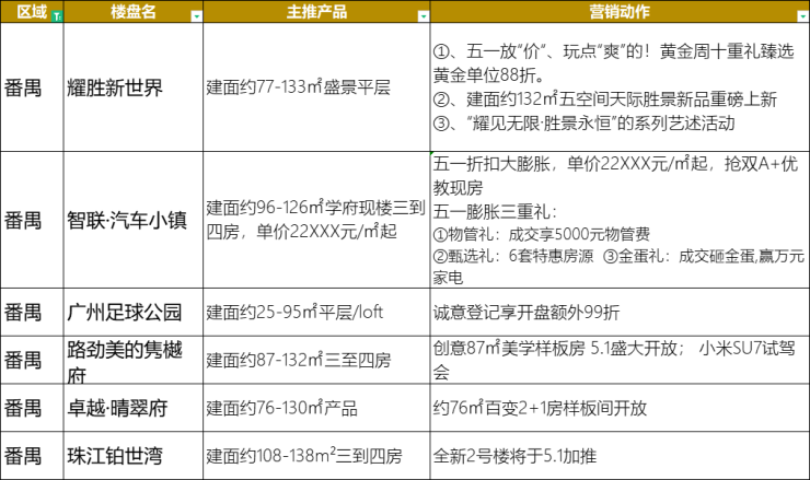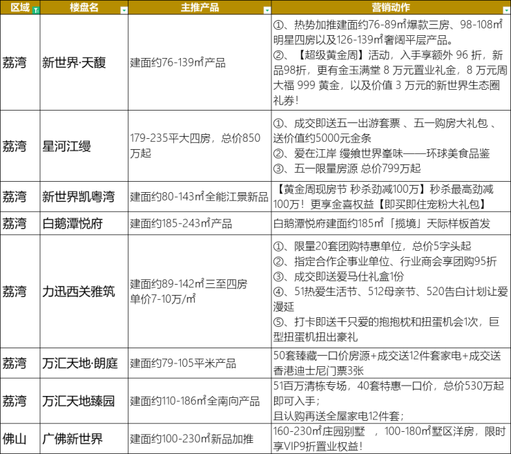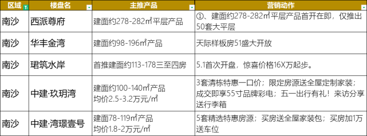 除此之外,华丰金湾5.1将迎来天际样板房开放;中建·湾璟壹号推出5套精选特惠房源,买房还送全屋家装包等。