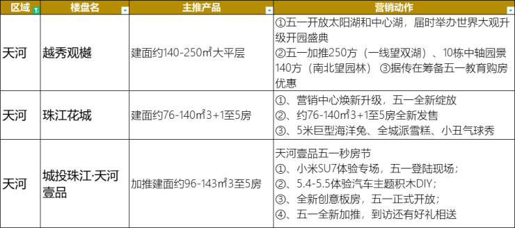 据小狐君不完全统计的近50楼盘中,全新盘入市、开放营销中心/样板房、一口价特惠、暖场活动等应有尽有。而且,更有部分楼盘现场(城投珠江·天河壹品、路劲美的隽樾府)安排有小米SU7试驾活动,可以说是非常值得期待了。