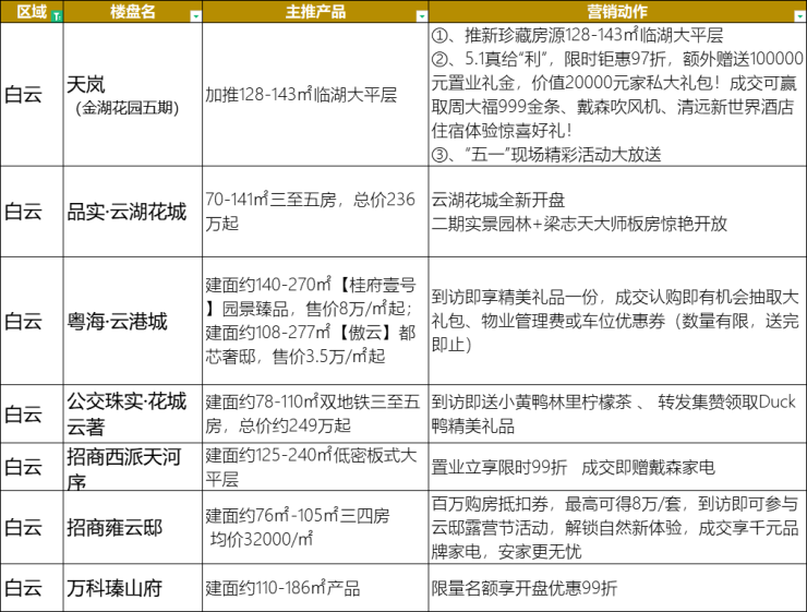 此外,万科瑧山府限量名额享开盘优惠99折;招商雍云邸、招商西派天河序也都推出各种优惠活动以及暖场活动,具体可查看上方表格。