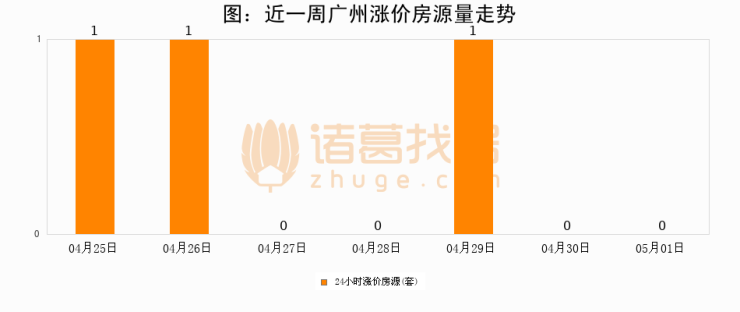 根据诸葛找房数据显示,广州24小时涨价房源量为0套,较04月30日持平。