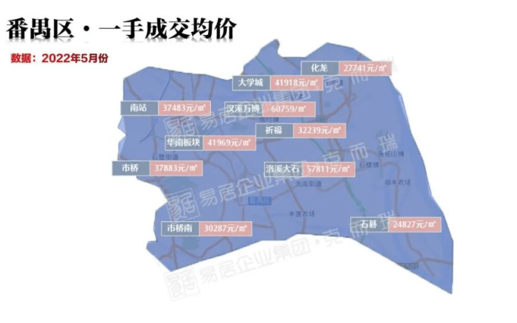 值得一提的是,5月份广州80个板块中,除8个板块0成交或无对比值,总计34个板块一手均价环比上涨,占42%;38个板块环比下跌,占比48%。