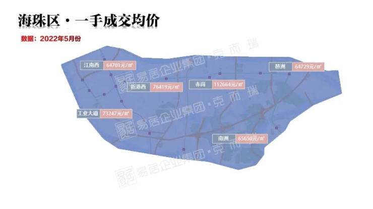 其中,赤岗板块一手均价猛涨,是由于4月底首开的琶洲南TOD项目的集中网签补录致使的。