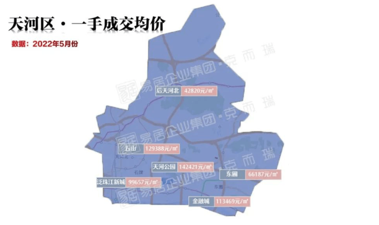2022年5月份,广州合计5个板块一手均价超10万+,分别是天河公园板块14.2万/㎡,五山板块12.9万/㎡,金融城板块11.3万/㎡,赤岗板块11.3万/㎡,老东山板块10.4万/㎡。