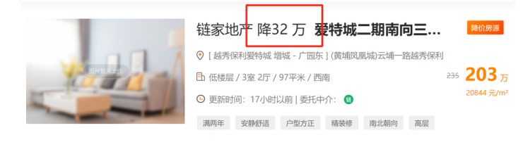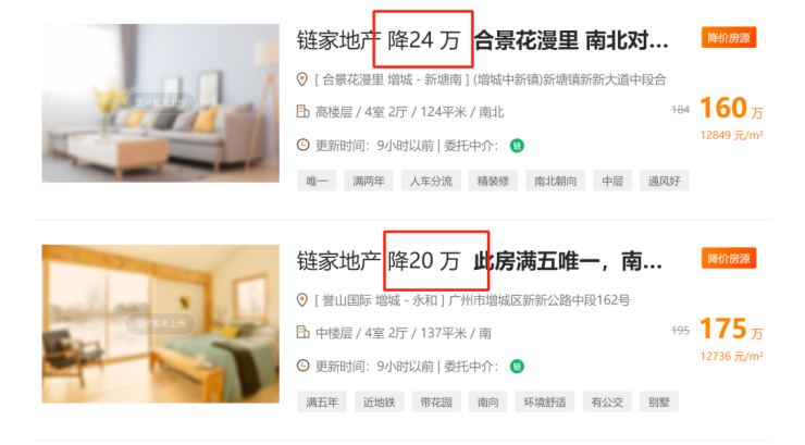 比如在诸葛找房上,整个广州24小时降价房源有917套,增城就占到了107套。其中,不乏有一日降幅达到20几、30几万的房源。