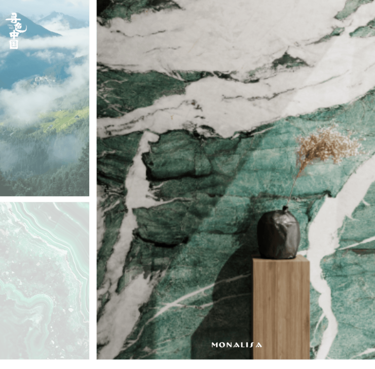 基于对传统文化的深度探索,蒙娜丽莎不断通过现代材料科学的应用,实现珍稀色彩、自然纹理的提炼与重现,通过瓷砖这一载体,传承中国色彩与陶瓷美学以工成色,以色达意的匠艺追求与审美高度。