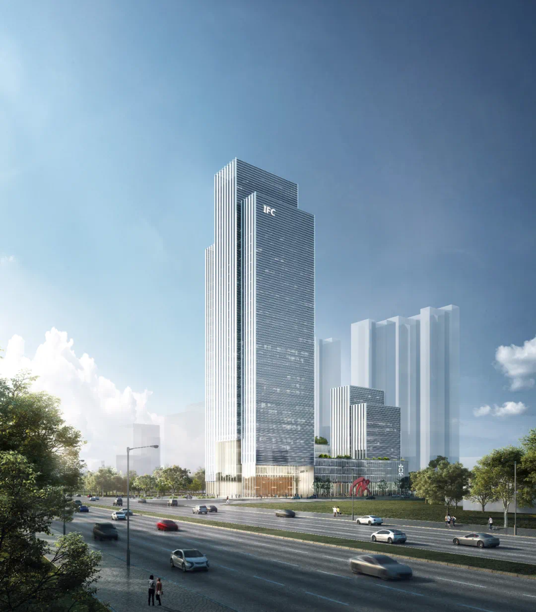 根据广州市设计院的方案,项目通过利用场地优势,整体形成高低错落,富有节奏感和韵律感的城市天际线。