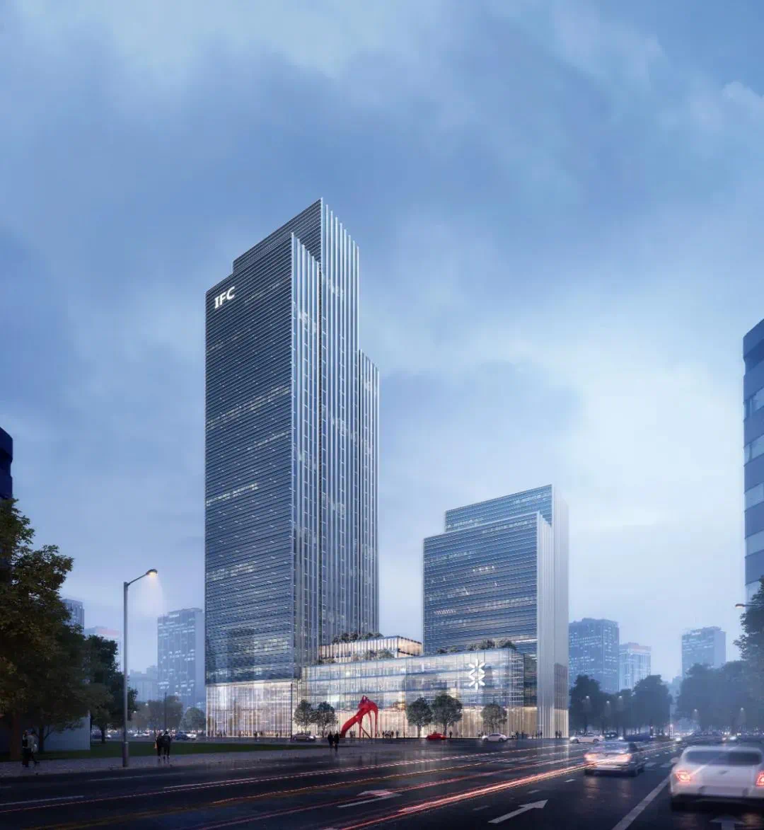 两栋建筑功能区分明确。其中,临近开创大道的150米高的写字楼,用于商务办公,建筑标准将按照甲级写字楼标准配建。