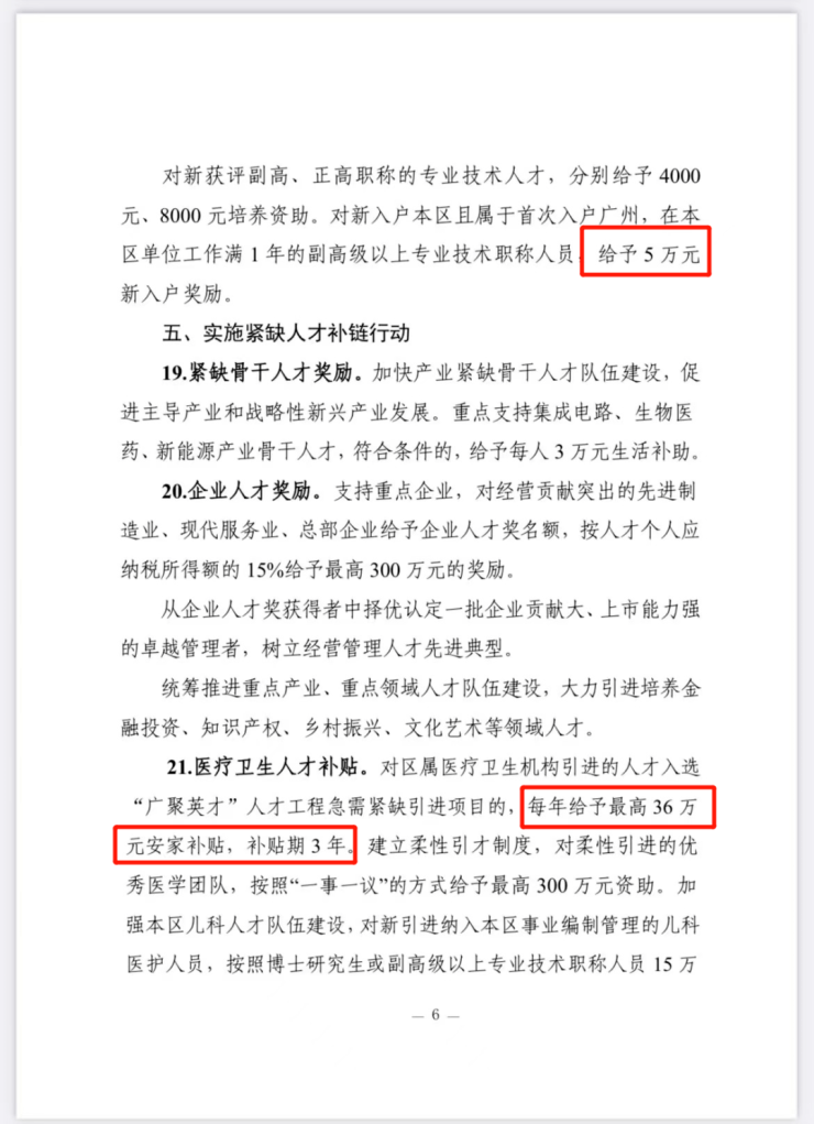 黄埔抢人才了!本科毕业生,入户黄埔区,即可获得2万元奖励!而针对高级人才,黄埔区政府最高可以给到300万元的购房补贴!