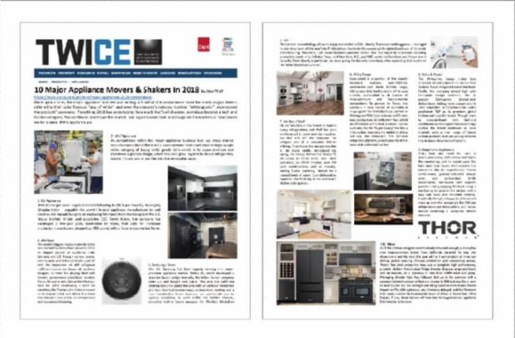THOR品牌的销售足迹遍布全球,在中国、加拿大、美国、澳大利亚、欧州均有自己独立公司,在海外的认可度与世界顶级品牌VIKING,WOLF,GE,LG等百年品牌比肩,被国际权威杂志《TWICE》评为年度最具影响力的十大品牌之一,与全球各大卖场Costco, HomeDepot, BestBuy, Walmar,Amazon 等深度合作。