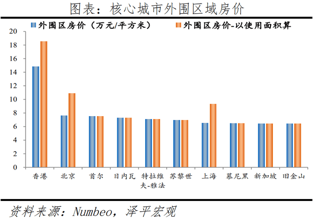 换算为使用面积后,全球排名前列名,还是中国香港,外围区域实际房价超18万元/平方米,还是远超其他小伙伴;