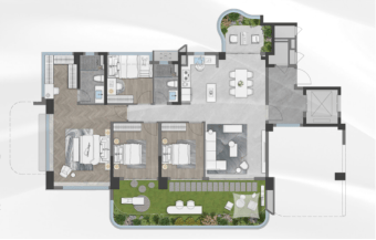 以125㎡户型为例,该户型配有双空中花园,奇数层户型中,较大的空中花园连通客厅和两间次卧,较小的空中花园则联通餐厅;偶数层户型中,两个空中花园分别实现双动线入户的独立玄关花园,以及带私密花园的主卧套房系统。差异化的产品策略,既满足了传统大阳台爱好者的需求,又为追求新颖生活方式的购房者提供了创新选择。