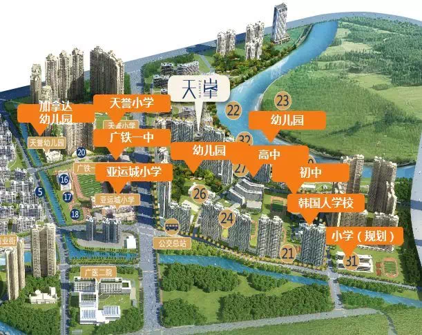 除此之外,亚运城的教育配套优势也相当凸显,广铁一中名校加持,幼儿园、小学、初中、高中配套到位,可一站式解决!