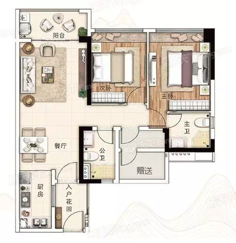 丽景湾的户型里有一个阳台为半赠送,可将其做成一个小书房,或儿童房,对于刚需者来说,可以多个房间。