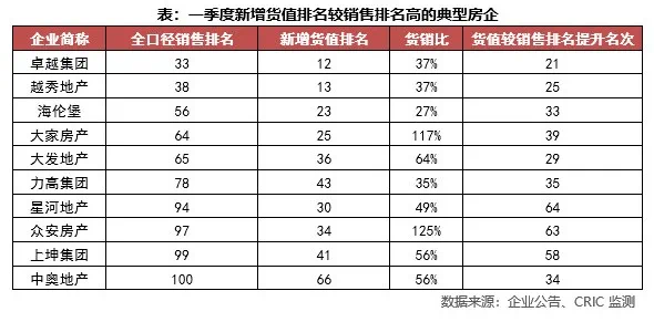 一季度仍有部分企业投资端表现突出,以一季度新增货值在200亿以上企业来看,基本均来自销售TOP50企业,销售前十如碧桂园、万科、中海、金地等新增货值同比涨幅在70%以上,规模房企优势仍然明显。