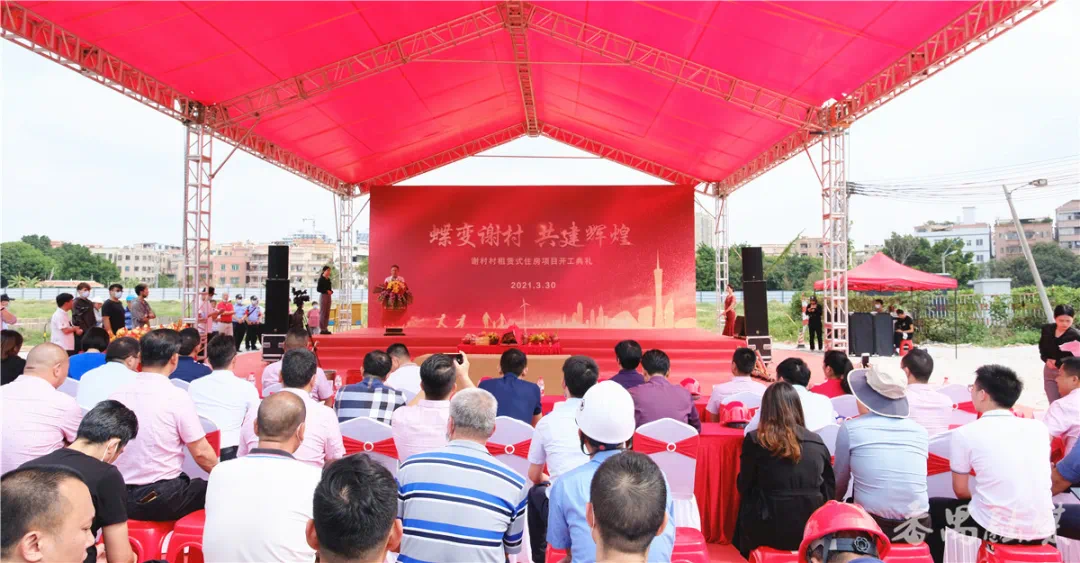 2018年,在市政府的建议和帮助下,谢村村项目从农民公寓形式转为租赁式住房形式。原本是无阳台、不可用明火和商业水电收费住房标准,如今转变为有阳台、可用明火、家用水电的普通住房标准,并按照每名股东35平方米实用面积的标准来建造。番禺区委、区政府和有关部门在项目取得相关施工许可证和批文方面给予了大力支持,最终促成了项目的顺利动工建设。