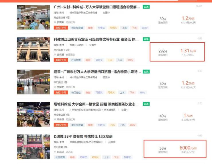 为了验证朱村商业的存活能力,我们同时对比了朱村商铺的租金。