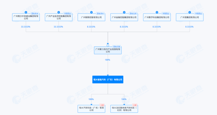 11月21日,据天眼查披露的信息显示,恒大智能汽车(广东)有限公司、恒大新能源汽车(广东)有限公司近日发生工商变更,原股东恒大新能源汽车投资控股集团有限公司退出,新增广州聚力现代产业发展有限公司(以下简称“广州聚力”)为控股股东。