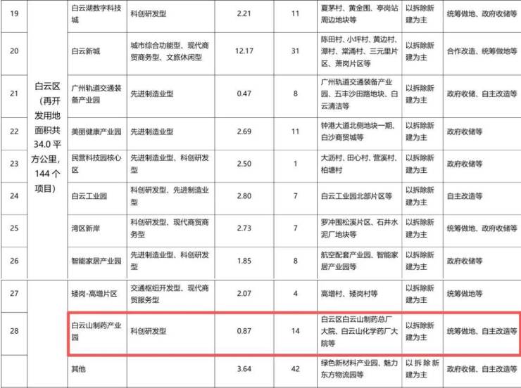 值得一提的是,在月初发布的《2023-2035年广州低效用地再开发专项规划》中,白云区至2027年拟开发低效用地34平方公里,其中就包含白云山制药产业园再开发。