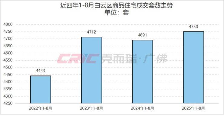 克而瑞数据监测显示,今年1-8月,白云区商品住宅成交4750套,其区域排名也由2023年同时期的第六位提升至今年的第三位,其中同和板块成交309套。