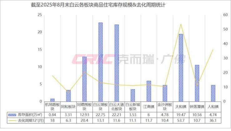随着流速的加快,克而瑞数据监测显示,截至8月末白云区商品住宅库存面积111.11万㎡,去化周期14.6个月,远低于全市平均水平;同和板块的库存规模更是仅有3.31万㎡,去化周期6.3个月。