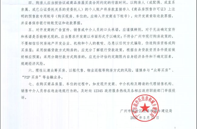 为进一步规范南沙区房地产市场秩序,保障购房人的合法权益,5月14日,南沙区住房和城乡建设局发布《购房风险提示》。