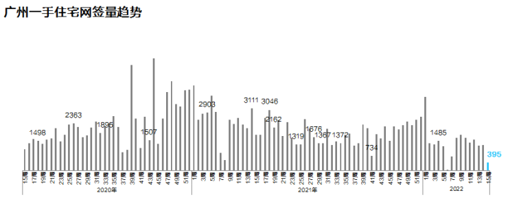据广州中原研究发展部数据显示,上周(4.4-4.10)广州全市一手住宅网签395宗,环比下跌69%。