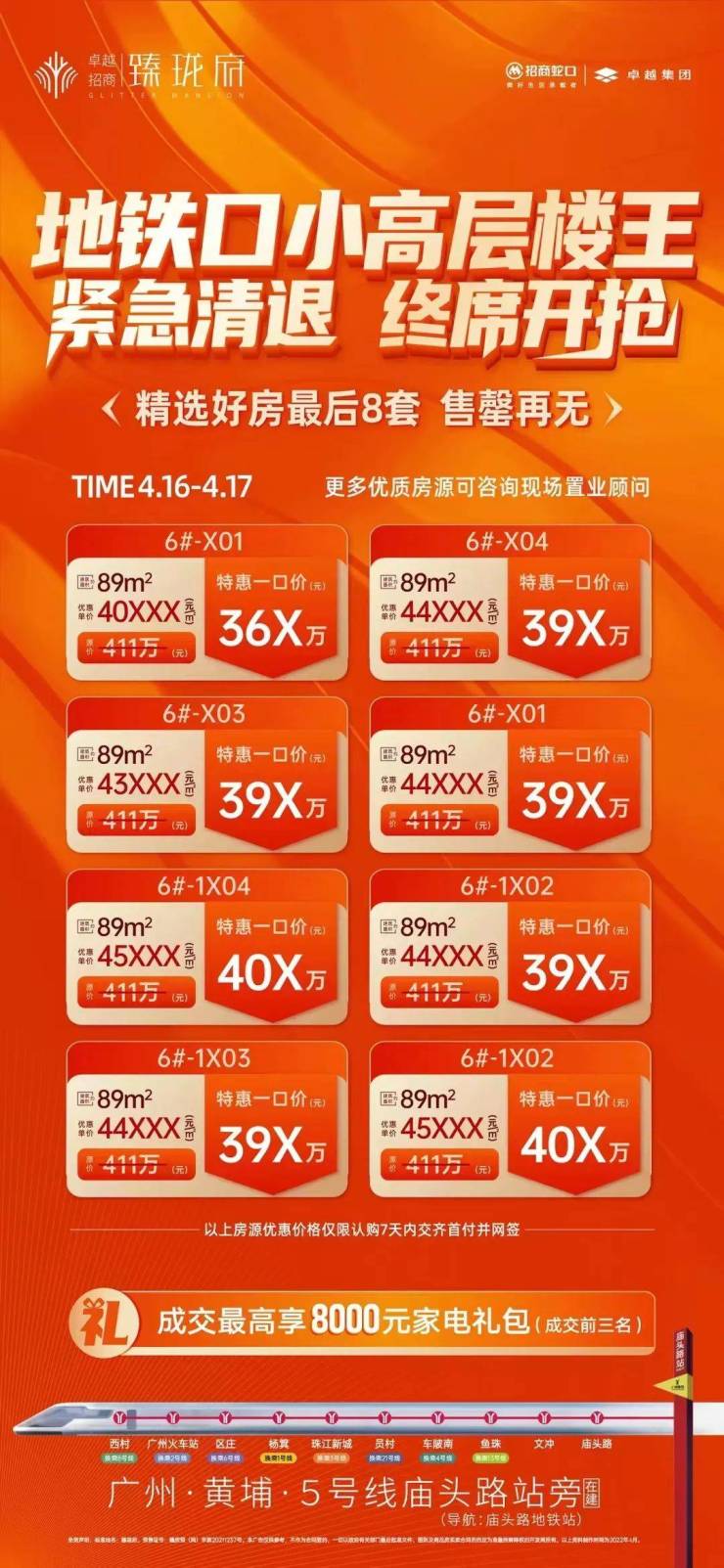 其中,先进招商·臻珑府推出8套建面约89㎡一口价单位,且前三名成交较高可获得8000元家电礼;