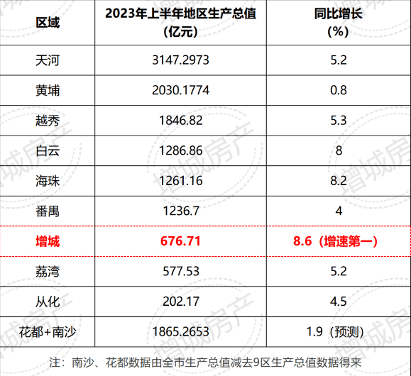 2023上半年,增城区完成地区生产总值676.71亿元,同比增长8.6%。增城GDP总量和增速已然超越了荔湾。