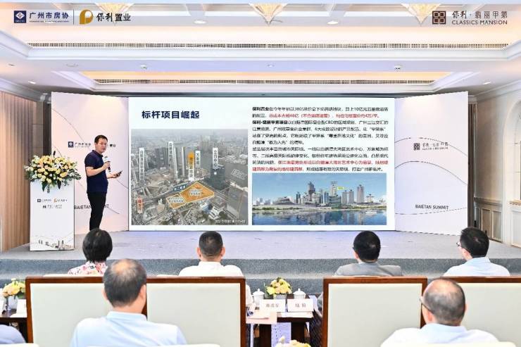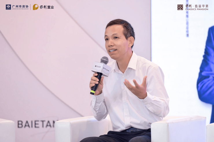 保利置业广东公司副总经理杨玉坚则给大家分享了白鹅潭城脉的溯源与发展:指出白鹅潭拥有广州商贸、文脉、江景等顶级资源,保利置业在此传承十三行精神、融合骑楼文化,结合甲第系“东韵西境”精神,打造保利·翡丽甲第项目,为城市匠筑“广州地标建筑”。