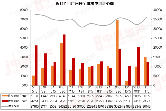 近半年广州住宅供求量价走势 图源:广州中原研究中心