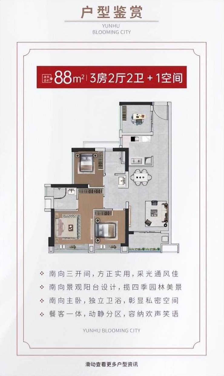 同等面积多一空间,超越“新规”的实用性与功能性。户户正南北朝向,多一灵动空间,解锁生活N种可能。买房选择多一重空间户型,灵活利用空间,满足家庭不同阶段的需求。无论二人世界、二娃家庭还是三代同堂,均可轻松容纳。