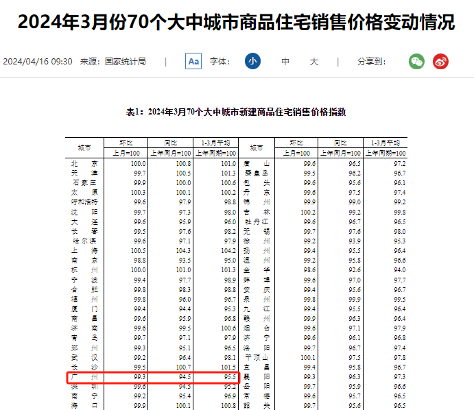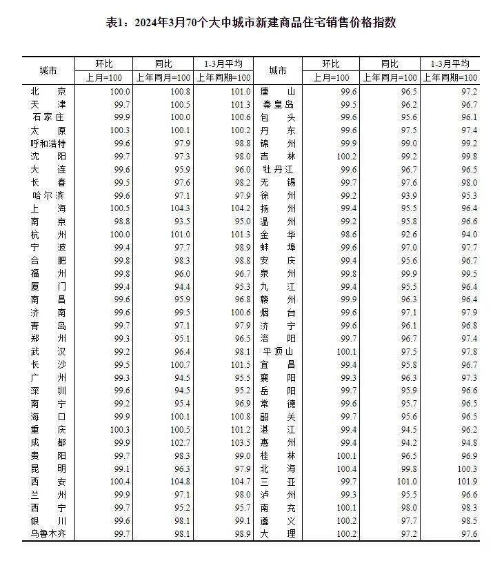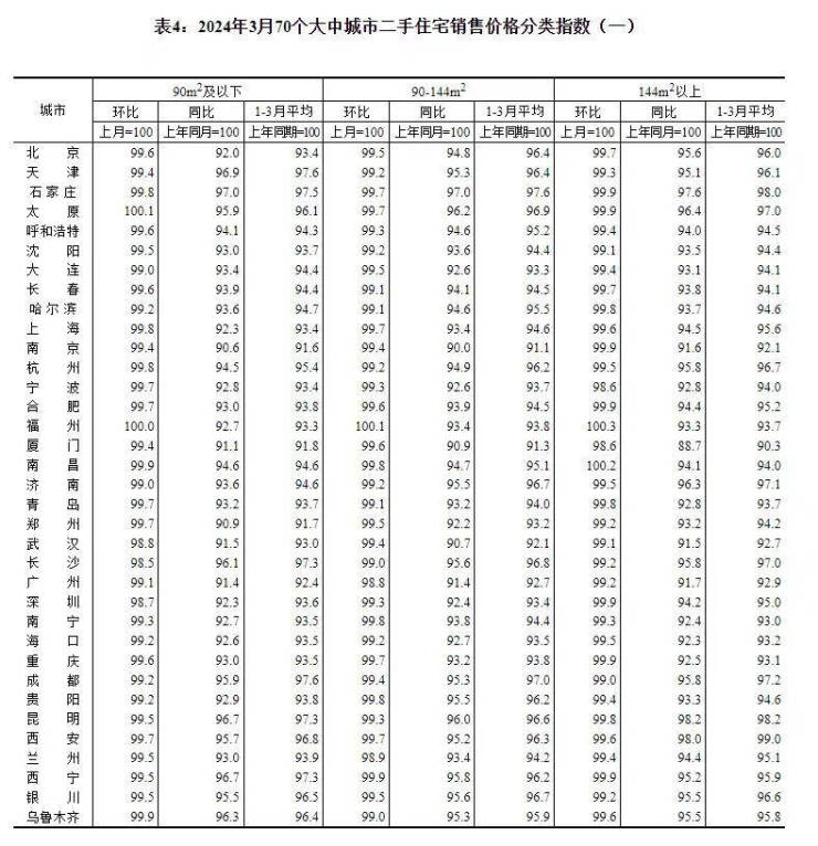 4月16日,国家统计局发布70城商品住宅销售价格变动数据。