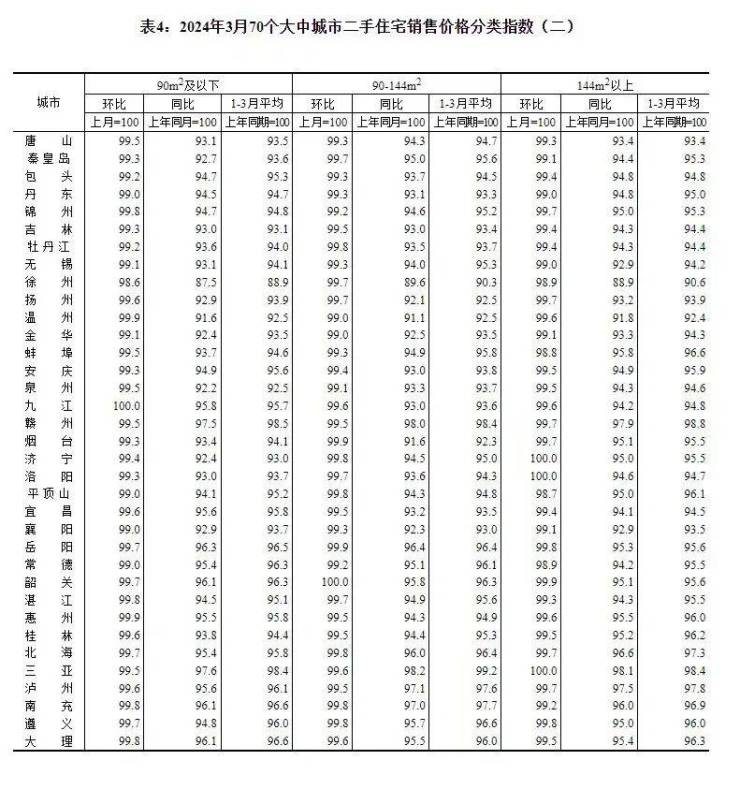 从数据来看,3月份,70个大中城市中,新房、二手房成交量比前期有所上升,各线城市商品住宅销售价格环比降幅收窄,同比降幅还在扩大。