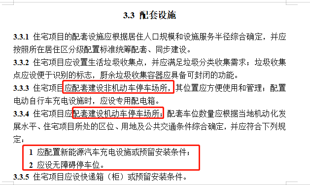 另外,在配套设施方面,住宅项目应配套建设非机动车、机动车停车场所。
