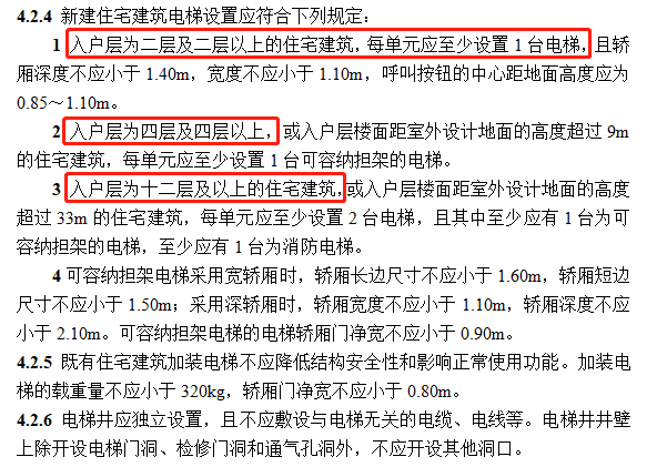 最后,《住宅项目规范》还对新建住宅建筑电梯做了规定。