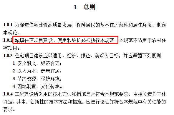 此外,《住宅项目规范》明确指出,城镇住宅项目建设、使用和维护必须执行本规范。