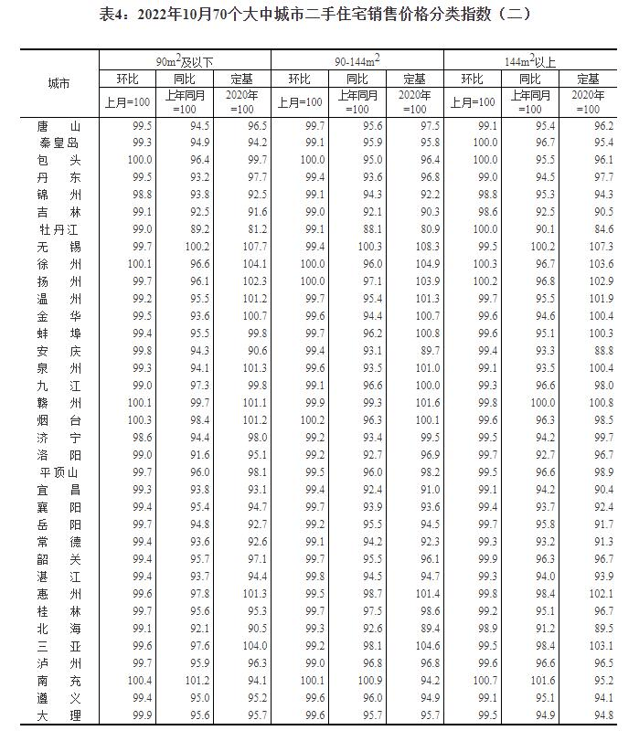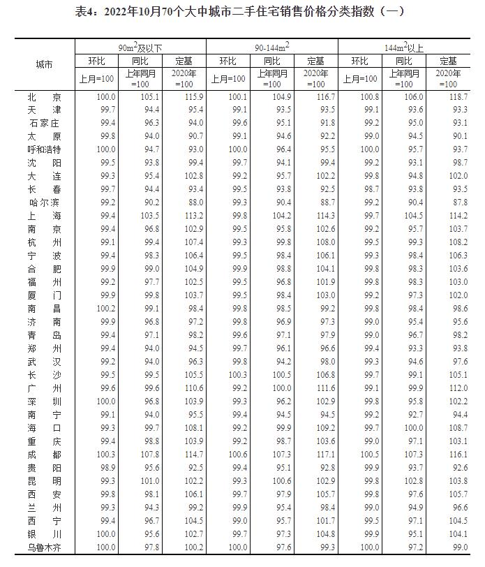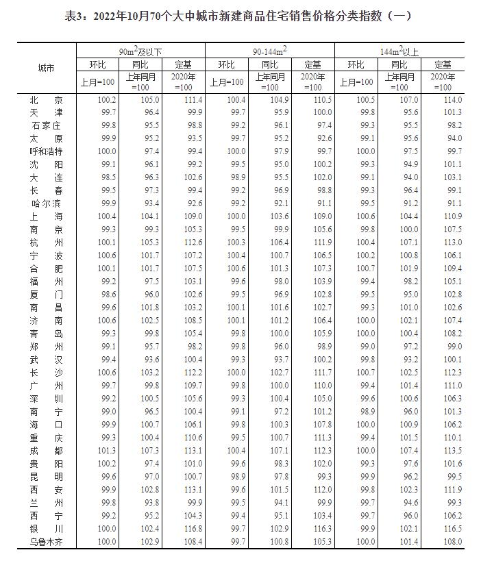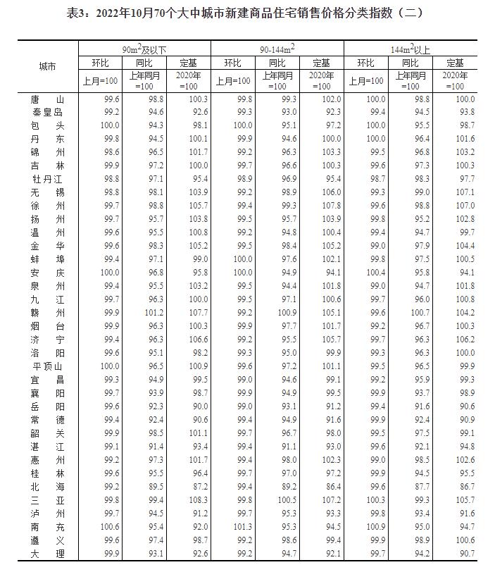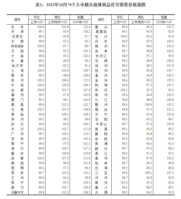 财联社11月16日讯,国家统计局数据显示,2022年10月份,70个大中城市中商品住宅销售价格下降城市个数增加,各线城市商品住宅销售价格环比下降,一线城市同比上涨、二三线城市同比降幅略扩。