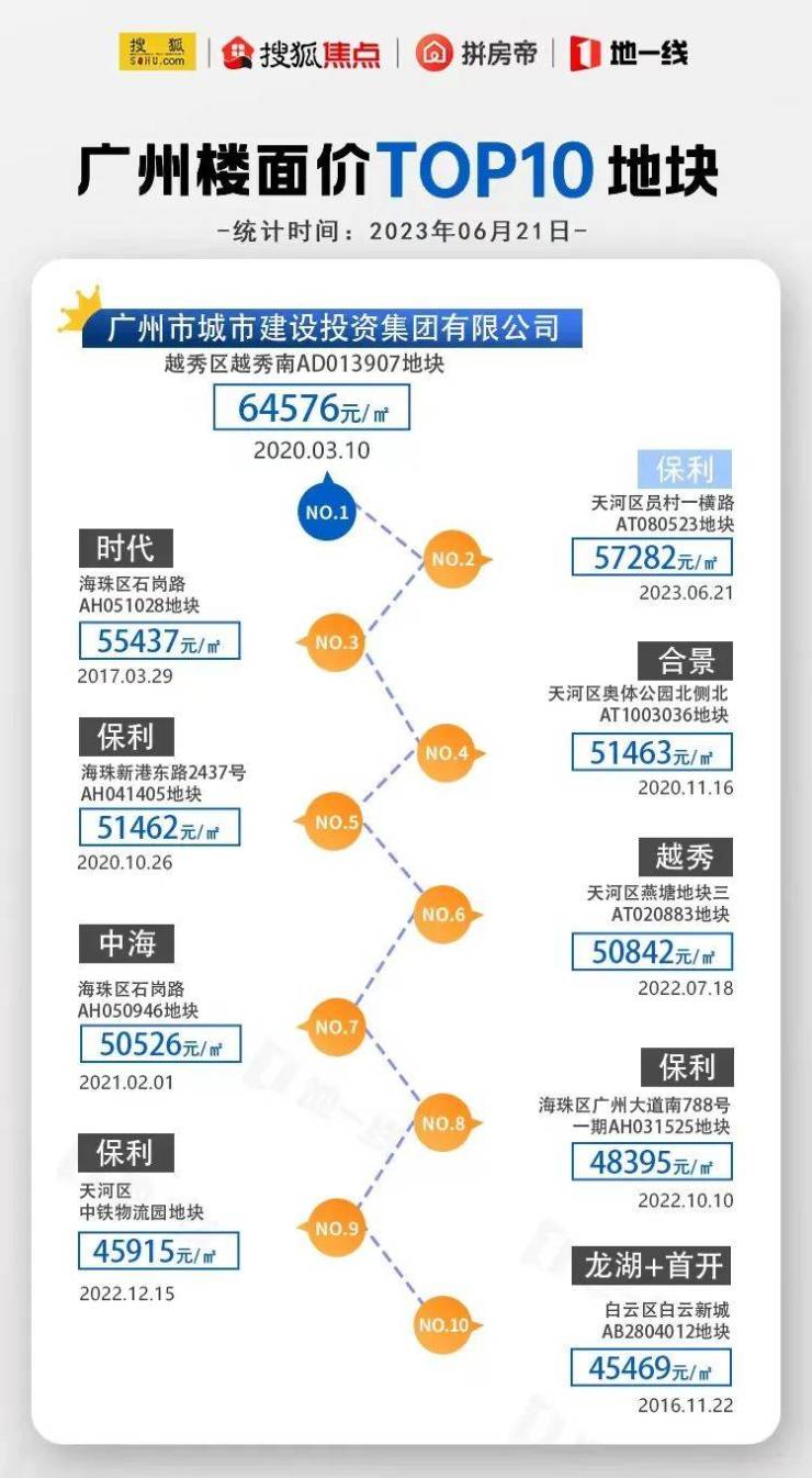 据搜狐焦点统计,在广州标杆楼面价TOP10地块中,海珠区就占了4宗。据公开数据显示,自2021年以来,海珠区成功出让了12宗涉宅地,光楼面价最高就已达5万元+/㎡。