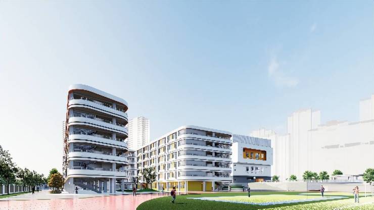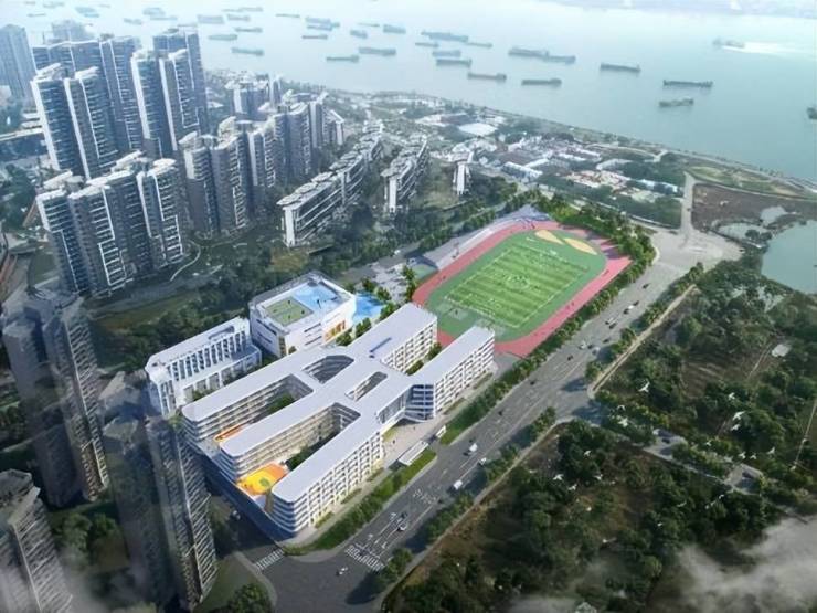 值得一提的是,学校将由著名团队设计,以超高标准耗资数亿元打造,总建筑面积53432平方米,配建齐全的教育设施如教学楼、操场、塑胶跑道等。依托周边一线海岸线与3大滨海公园,学校在设计上特别注重与自然生态相融合,建筑容积率仅0.95、绿化率超35%,不仅为孩子们的课后探索提供“自然学堂”,更为孩子们提供充足的锻炼与嬉戏空间。
