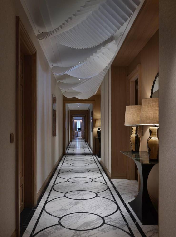 Winch Design还与知名照明设计师Gabriel Scott合作,为顶层公寓的入口走廊和主卧定制了独具风格的灯光装置。这些装置既是艺术品,又是实用的光源。而私人健身房中的设备则由Paragon Studios工作室定制制造,并使用天然可持续的动力材料手工制作,处处彰显工艺。