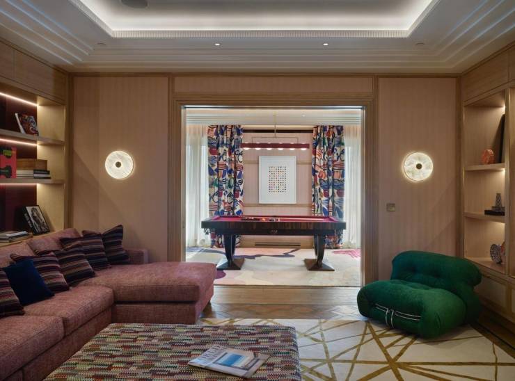 此外,Winch Design的设计方案还汲取英国多元文化灵感,如融合伦敦萨维尔街(Savile Row)的裁缝文化、跨文化创意、传统工艺和标志性的伦敦天际线,以及住宅本身的景观,巧妙地将它们融入顶层公寓的每一个角落。设计师对细节的关注贯穿整个设计过程,从而打造了出一个充满活力与特色的住宅。无论是用色、选材或大胆的搭配,都与顶层公寓的室内建筑相得益彰。