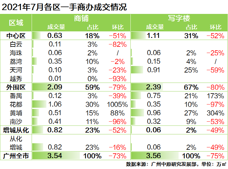 一手商办:市场成交高位回调,但公寓交易热度不减继年中冲刺后,7月广州商铺、写字楼市场冲高回落,成交缩减明显,但公寓市场交易热度保持,成交高位企稳。