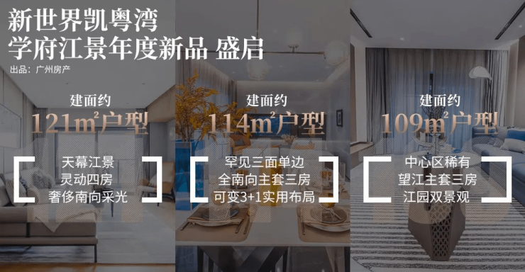 新世界凯粤湾推广美善教育,这次新推的产品紧邻西关培正小学凯粤湾校区,让孩子从小就有琅琅书声熏陶;在建面约80-143平方米二至五房的基础上,主推涵盖建面121㎡“会魔法”的天幕江景四房、114㎡“会长大”阳光3+1房、109㎡“有书香”的江景三房。