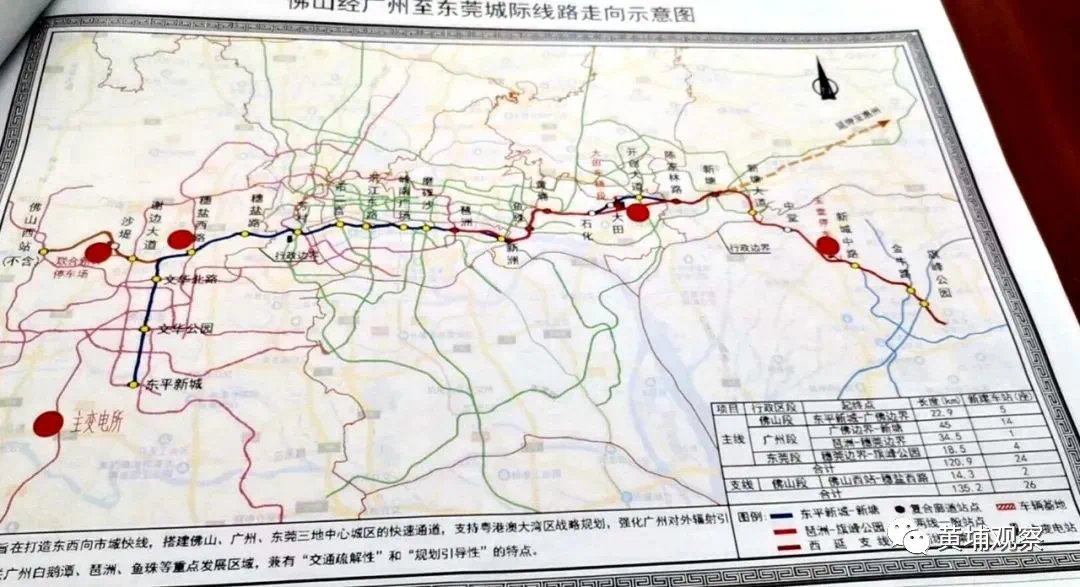 第二个变化:原来规划的四线化区段有所调整:原来琶洲-新塘的复合廊道,改为黄埔站-新塘站,黄埔枢纽站的地位得到进一步提升。